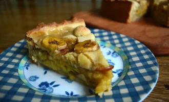 - Klä en bakform med bakplåtspapper, lägg i degen och platta till den.