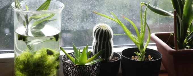 - Aloe vera Har antimikrobiella egenskaper, absorberar fukt från luft och jord. Lämplig för badrum och kök.